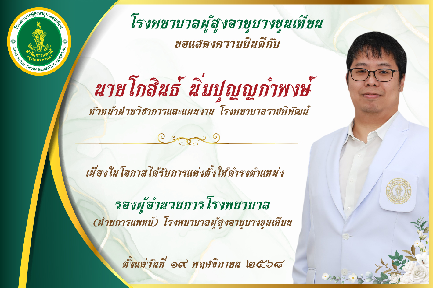 โรงพยาบาลผู้สูงอายุบางขุนเทียน ขอแสดงความยินดีกับ
